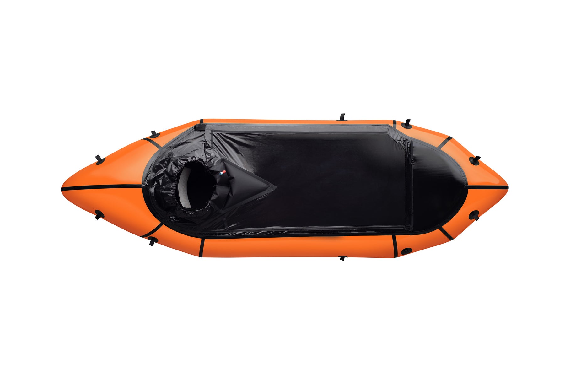 Microraft Extra Long comes with a removable C-type spray skirt, which allows you to get in and out of the packraft easily. Water may get in around the edges under extreme white water conditions.